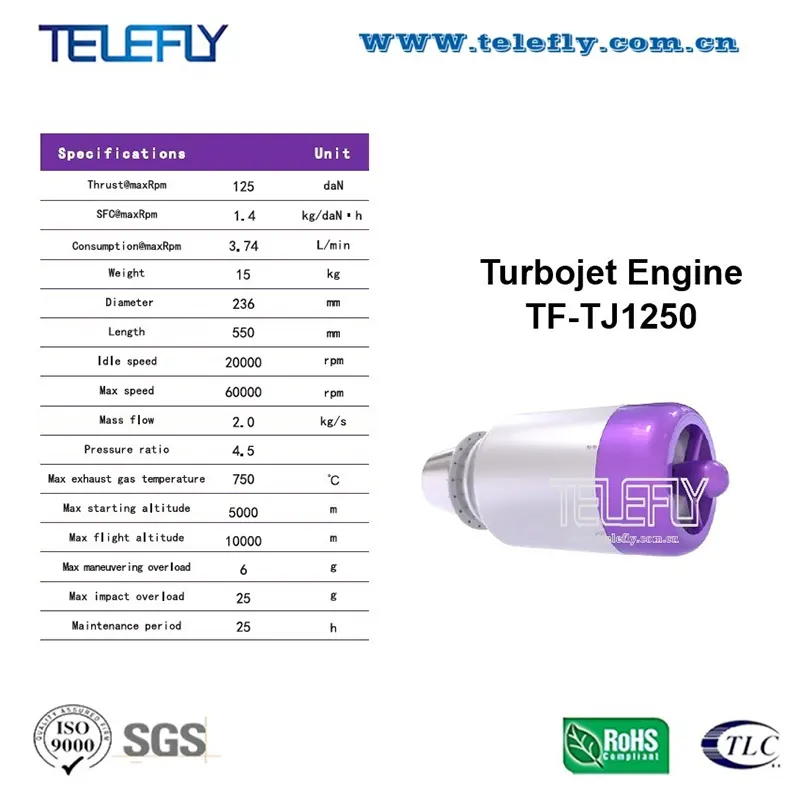 Das TF-TJ1250-Turbostrahltriebwerk von Telefly ist ein Triebwerk der nächsten Generation, das sich durch fortschrittliche Technik, hohe Haltbarkeit und überragende Leistung auszeichnet. Der TF-TJ1250 wurde sorgfältig nach globalen Standards entwickelt und sticht unter seinen Mitbewerbern durch seine hohe Effizienz, Stabilität und langfristige Zuverlässigkeit hervor. Als zuverlässiger chinesischer Lieferant bietet Telefly flexible Großhandelsoptionen, wettbewerbsfähige Preise und starken Kundendienst für diesen Motor.